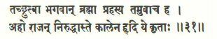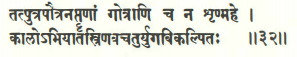 The two crucial shlokas in Srimad Bhagavatham that explain the travel of King Kakudmi to Brahmaloka. The first translates to Lord Brahma explaining to the King that all those prospective son-in-laws he was looking for his daughter have already long passed away. The second one translates to the reason that while they were there in Brahmaloka, 27 chaturyugas have passed on the Earth.